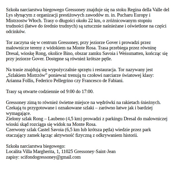 Gressoney-Saint-Jean – narciarstwo biegowe i rakiety śnieżne